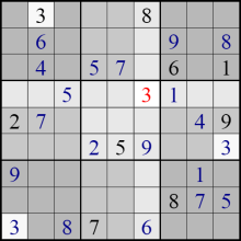 Sudoku ist ein reines Logikspiel. In einem Feld von 9x9 Kästchen werden einige Zahlen vorgegeben. Es müssen alle fehlenden Ziffern ergänzt werden, wobei sowohl in jeder Zeile und jeder Spalte, als auch in jedem 3x3 Kästchen großem Quadrat die Ziffern 1-9 genau 1x vorkommen dürfen.